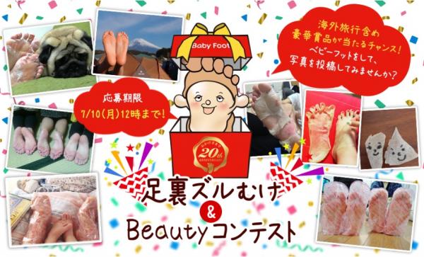 今までのべ4,000人以上の方が参加している『足裏ズルむけ&Beautyコンテスト』は、ベビーフットを使っている様子を写真に撮って、エピソードと共に投稿するフォトコンテスト。今回は20周年を記念してスペシャル版を開催。海外旅行含め、豪華賞品が当たるチャンスです!