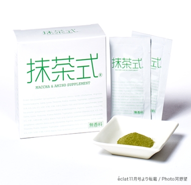 抹茶式アミノ酸 疲労回復や体力維持、筋肉の成長に効果的。ダイエットに大切なアミノ酸をバランスよくブレンド。アミノ酸11種類、ビタミン11種類、脂質代謝を高めるカルニチンにCoQ10も配合。抹茶味が飲みやすい、アクティブ派にオススメなアミノ酸です。 2.7g×30袋 ¥9,000(税抜)