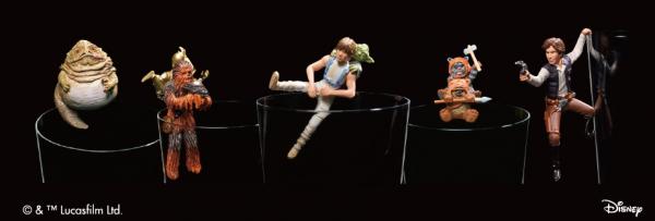 (※下画像/左から)ジャバ・ザ・ハット、チューバッカ&C-3PO、ルーク&ヨーダ、イウォーク、ハン・ソロ