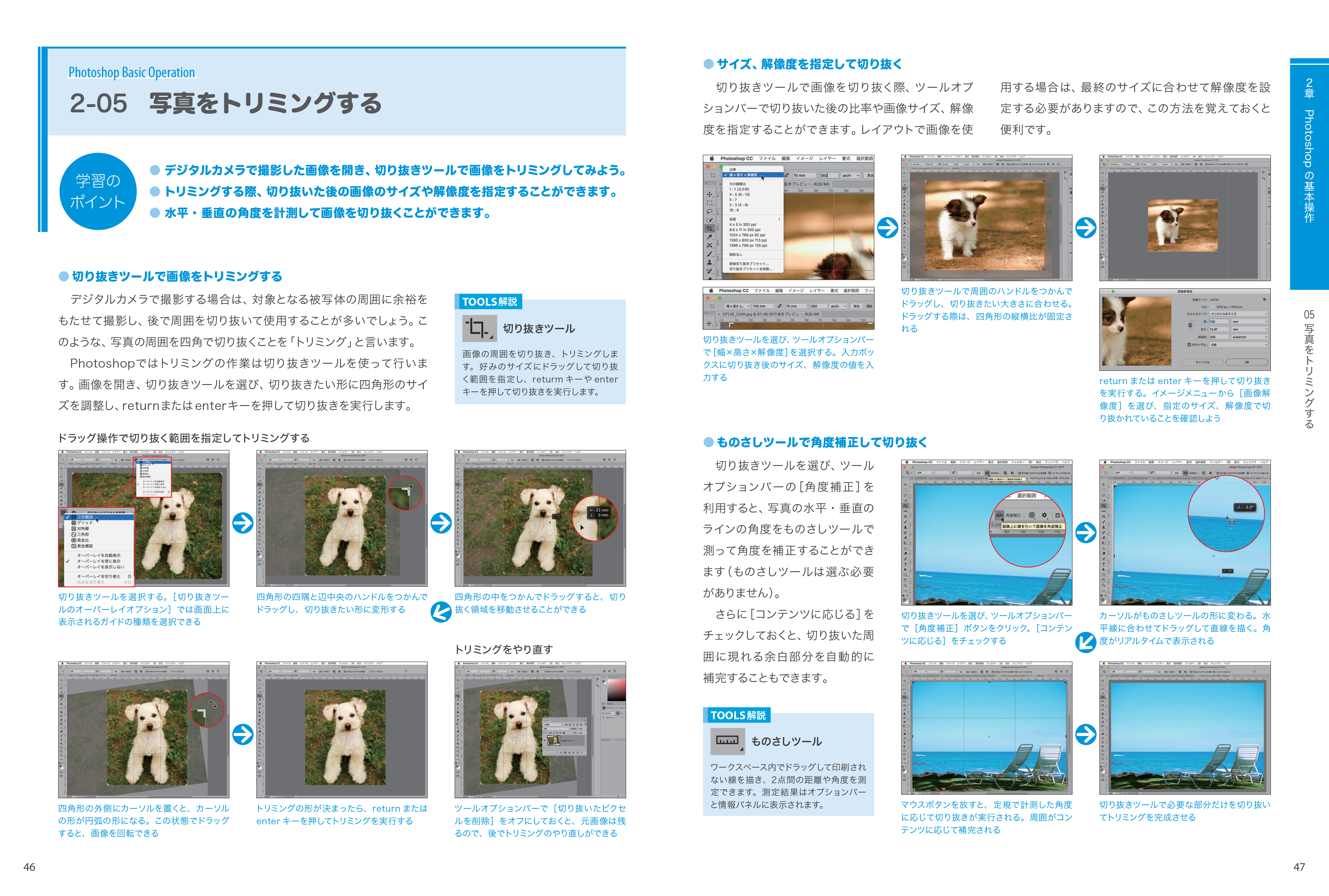 2章では、Photoshopを解説。デジタルカメラで撮影した写真の補正や合成方法を解説します。