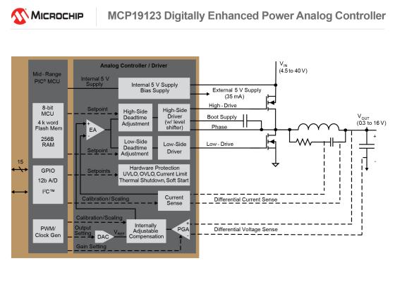 [NASDAQ: MCHP] - Microchip Technology Inc.(日本支社: 東京都港区浜松町、代表: 吉田洋介 以下Microchip社)は本日、DC/DC電力変換向けマイコン内蔵アナログ電源(DEPA: Digitally Enhanced Power Analog)降圧型コントローラ新製品を発表しました。このデバイスは、現在市販されているアナログ制御アーキテクチャの中で最も高い柔軟性を備えています。本デバイスはDC/DCコンバータを制御し、外付け部品またはドライバなしで最大42 Vの入力と0.3~16 Vの出力が可能です。詳細はhttp://www.microchip.com/MCP19123を参照してください。