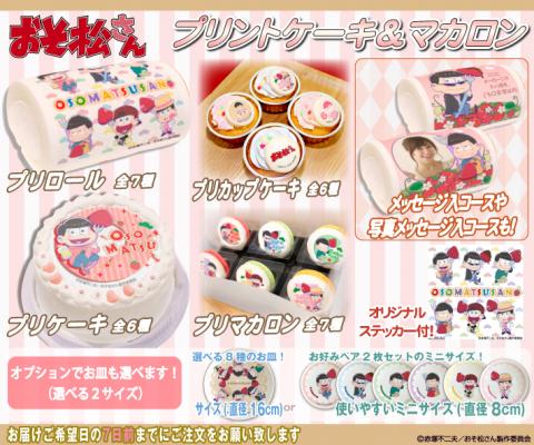 「プリロール」を運営する株式会社栄通(本社:東京都八王子市)は、人気テレビアニメ『おそ松さん』の描き下ろしイラストを使用した、プリントケーキ&マカロンを2017年5月1日(月)に発売いたしました。