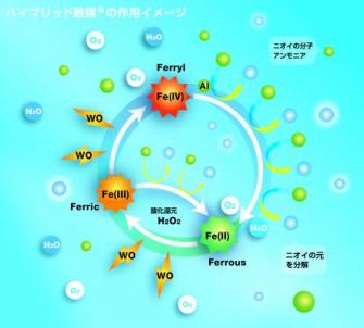 鉄イオン触媒の強力な酸化力をさらに高めるため、相性の良い希元素を微量配合しました。これにより、広範囲の臭いに対して長期間にわたり安定的に消臭・抗菌効果を発揮します。