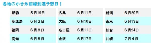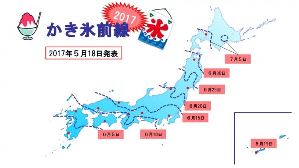 ※今後、ビジネス気象研究所の研究員の気象予報士が天候傾向の変化に基づく かき氷前線の北上速度に変化が生じていると判断した場合、改めて最新の前線を発表する場合があります。