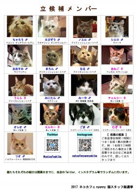 猫たちそれぞれの紹介は開票日までに,当店のTwitter,インスタグラム等でランダムに行います。