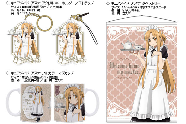 また、描きおろしのキュアメイドカフェ制服を着たメイド姿の“アスナ”をいつでも楽しめる「アクリルキーホルダー/ストラップ」「フルカラーマグカップ」「タペストリー」も店内にて先行販売致します。いち早く手に入れられるこの機会をどうぞお見逃しなく。