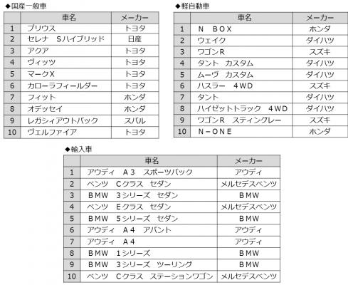 当ランキングは、全国約7,500店の中古車販売店が販売プロセスの一環であるTVオートオークションを利用し、ご成約頂いた車両について、国産一般車・軽自動車・輸入車に分けて集計したものです。