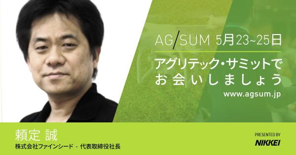 株式会社ファインシード(本社:東京都渋谷区、代表取締役社長:頼定 誠)は、2017年5月23日に虎ノ門ヒルズで行われるAG/SUM アグリテック・サミットで農業IoTで身近についてピッチ・セッションへ出演することをお知らせ致します。また、同サミットでファイン・ファーム事業のこっそり農遠を展示することを合わせてお知らせ致します。
