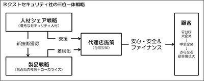ネクスト・セキュリティは、日本の情報セキュリティレベルの向上に資するための三位一体戦略(下図ご参照)を推進しております。この戦略に基づき、「@割符」製品の代理店を通じて販売をいたします。