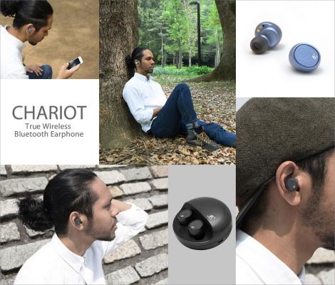 『CHARIOT(チャリオット)』は左右のイヤーピースをつなぐケーブルが無い完全ワイヤレスタイプなので、人混みや荷物を持っているときなどでもケーブルが動きを邪魔しません。イヤホン本体も重量が5gと小型・軽量のワイヤレスイヤホンです。
