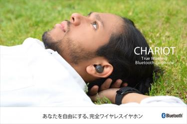 『CHARIOT(チャリオット)』は左右のイヤーピースをつなぐケーブルが無い完全ワイヤレスタイプなので、人混みや荷物を持っているときなどでもケーブルが動きを邪魔しません。イヤホン本体も重量が5gと小型・軽量のワイヤレスイヤホンです。