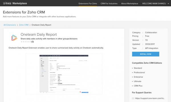なお、「Oneteam Daily Report」は、「Zoho Marketplace」で無料で提供されます。