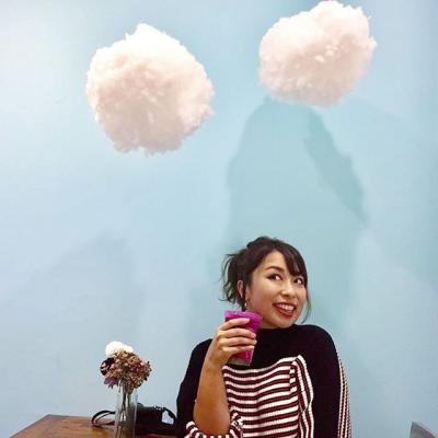 水色の壁に雲が浮いている席や、花のオブジェが飾られているスペースなど、写真映え抜群のカフェです。