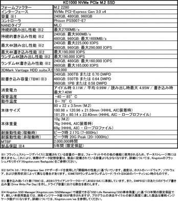 - 米カリフォルニア州・ファウンテンバレー, 2017年5月25日- メモリ製品における世界的リーダーであるKingston Technologyは、本日、「KC1000 NVMe PCIe SSD」を発表いたしました。 6月中旬より出荷が開始されるM.2 NVMeTM PCIe SSDは、SATAベースのSSDに比べて2倍以上、7,200rpmのハードディスクドライブに比べて40倍以上高速です。 KC1000は、究極の低レイテンシパフォーマンスを提供するパワーユーザー向けに設計され、従来のストレージソリューションではデータデマンドをまかない切れないHDビデオ編集、データビジュアライゼーション、ゲーム、その他のデータ集約型ワークロード環境など、高速なストレージリソースを必要とするアプリケーションに最適化されています。