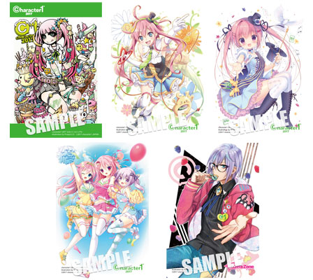 Project.C.K、えれっと、宮坂みゆ、ほし/蒼井ゆん/muku、もちもち太(工画堂スタジオ)のイラストを使用した「タペストリー」や「手帳型スマホケース」など『character1 2017/character1 2017ガールズゾーン』公式グッズをはじめ、