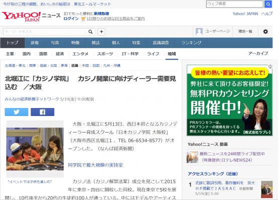 日本でのカジノディーラーの必要性ををいち早く捉えた日本カジノ学院大阪校は、様々なメディアに捉えられ、ヤフーニュースにも取り上げられる勢いは、日本のカジノに対する姿勢でもある。