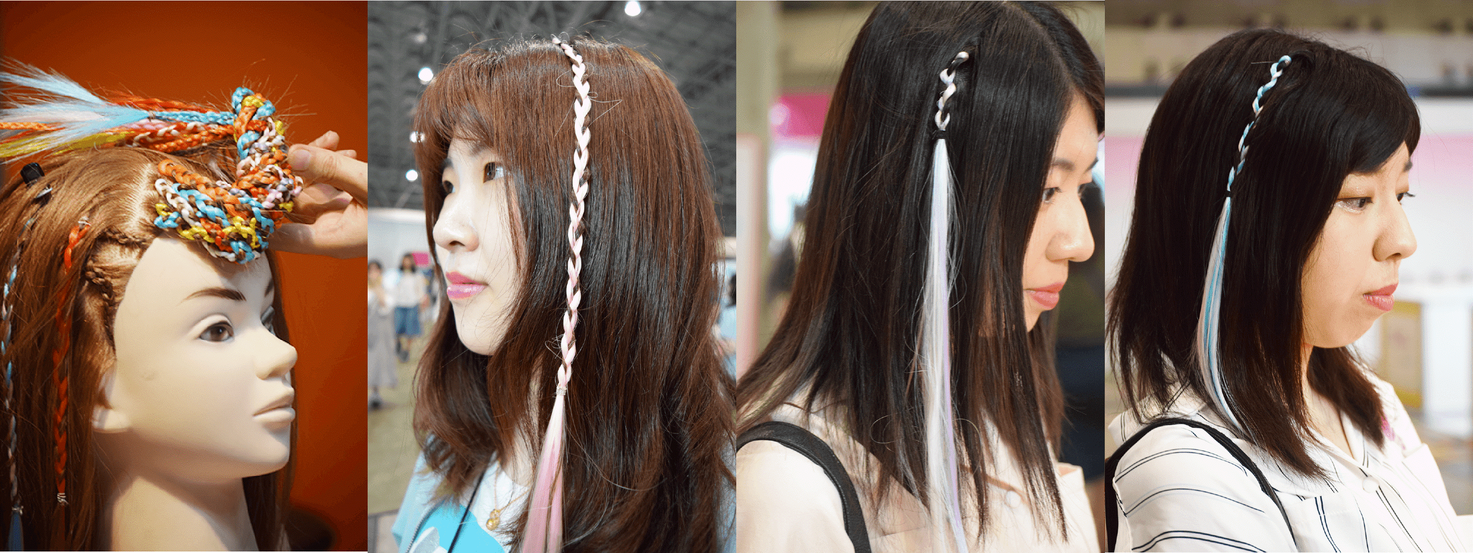 韓流メイクのトレンドに敏感な方々が多く訪れ、会場は常に行列、大盛況のまま開催期間3日間を終了いたしました。「カラーヘアーエクステンション体験」ブースでは、来場者がヘアーエクステンションの編みこみ方を真剣に学ぶ姿も見られ、韓流メイクに対する関心の高さが伺えました。
