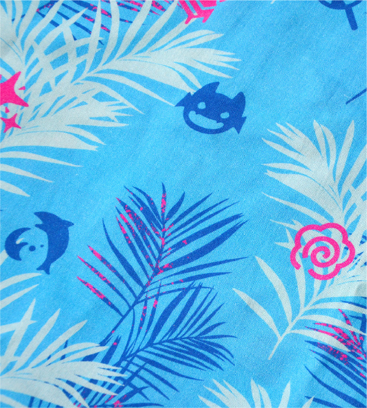 トロピカルな柄の中にメンバーのモチーフを詰め込み、全体をブルーで纏めることで涼しげなデザインに仕上がりました。