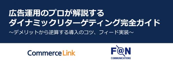 ECサイトの集客・売上拡大を支援するコマースリンク株式会社(本社:東京都大田区、代表取締役社長:永山 淑子)は、株式会社ファンコミュニケーションズ(本社:東京都渋谷区、代表取締役社長:柳澤 安慶 東京証券取引所市場第一部:2461)と共催し『広告運用のプロが解説するダイナミックリターゲティング完全ガイド』と題した無料セミナーを2017年6月23日(金)に開催します。
