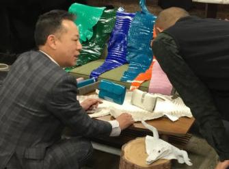 お客様自身が「型入れ」「裁断」から「漉き」に至る工程、「切り目」や「へり返し」など製法の違いを確認することによって「スッキリしていて軽い」「長く使用しても型崩れがしにくい」一流のクロコダイル革製品本来の価値(魅力)を知ることができます。