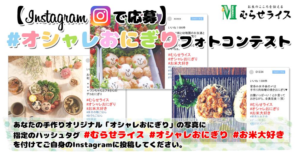 米穀の製造加工および販売を手掛ける、株式会社むらせ(所在地:〒238-0011 神奈川県横須賀市米が浜通 1-6、代表取締役:村瀬 慶太郎)は、このたび、「オシャレおにぎりフォトコンテスト」を開催します。