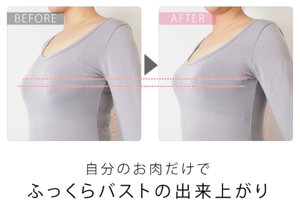 「脇肉キャッチャーLIGHT Happy Bag」は、脇に流れるお肉をカップに収めて背中もすっきり見せてくれる補整ブラジャー。女性の体は20代後半から徐々に老化が始まっていると言われますが、切実に体型の変化を感じ始めるのは、主に出産と授乳を経験することが多い30代から。このことは主力商品の補整ブラジャー「脇肉キャッチャー(R)」の購入者で30代の割合が最も高いことや(自社調べ)、カウンセリング時の「卒乳後にバストがしぼんだ」という顧客の声からも分かります。バストは下垂すると元には戻らないため、下垂が始まる前からバストケアを行い、授乳や加齢による変化に備えておくことが大切です。