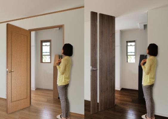 [写真]左:一般のドア 右:当社の『フルハイトドア』