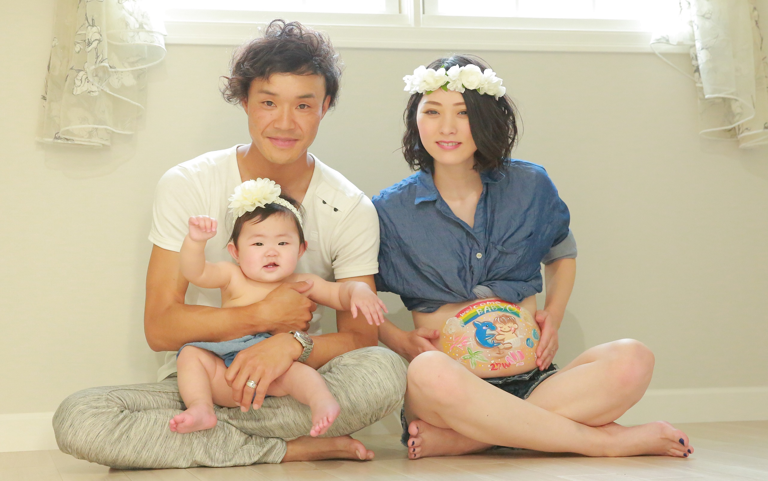 当社が運営する他のフォトスタジオでは、妊娠中の姿を写真に残す“マタニティフォト”の人気も高くなっています。オプションで提供する“ベリーペイント”はお腹にペイントをするサービスで、安産祈願の意味もあり、希望する人が増えてきました。“ベリーペイント”のデザインは見本から選ぶか、希望の絵や文字ペイントに合わせて担当のスタッフが書きます。当店でも「家族の成長ストーリー」をお腹の中にいるときから写真として残していけるように、マタニティフォトのサービスも提供します。一軒家の貸切型フォトスタジオのため、ママもリラックスして撮影できます。