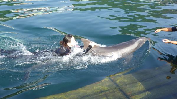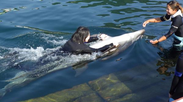 まず、イルカと触れ合うことで、リハビリ効果や精神刺激になります。