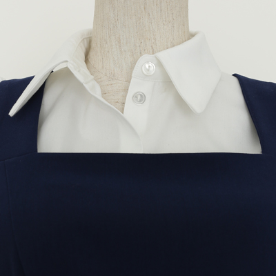 ブラウス・ワンピースは共に胸の丸みにそってふんわりと包み込む立体裁断で