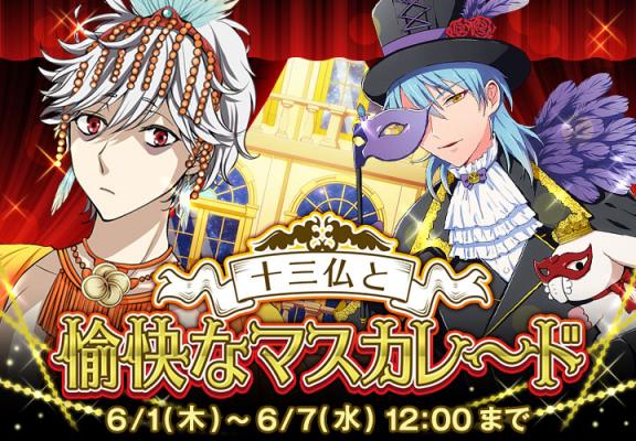 株式会社ビジュアルワークスは、「なむあみだ仏っ!」のイベント【十三仏と愉快なマスカレード】を2017年6月1日(木)12:00より配信開始いたします。