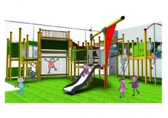 (4)神戸港を眺めながら遊べる!船をテーマにしたスウェーデン HAGS社の天然木を使った18種類24箇所のアスレチック遊具で船員になった気分で遊べます。