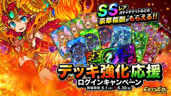 期間中、25日間ログインすると、「竜石」が最大25個もらえる「デッキ強化応援ログインキャンペーン」を