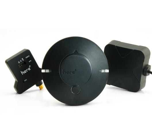 Here+ RTK GNSSキットは出荷時の状態でArduPilotに対応します。ドローン上に搭載するよう設計された円形ローバーから成り、同梱の8ピンCLIK-MateTMコネクタ (オートパイロットPixhawk2対応) またはオプションの4ピン+6ピンDF13コネクタ (Pixhawk1対応) を使用してフライト・コントローラーに接続します。その他、小型GNSSレシーバー搭載の基地局と外部アンテナで装置を構成しています。Here+に搭載されたu-blox NEO-M8Pモジュール・シリーズは、世界最小/最軽量でありながらエネルギー効率の高い高精度GNSSリアルタイム・キネマティック (RTK) モジュールとして、マスマーケットにセンチメートル級の測位精度を提供しています。基地局向けとローバー向けの製品展開による完全かつ汎用性の高いソリューションでもあります。
