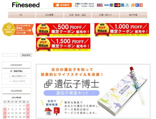 株式会社ファインシード(本社:東京都渋谷区、代表取締役社長:頼定 誠)は、ダイエット遺伝子検査キット『遺伝子博士』を販売する「ファインシード楽天市場店」(http://www.rakuten.co.jp/fineseed/)が、40,000を超える楽天市場全店舗のうち29店舗のみに与えられる名誉ある賞、【楽天市場ショップ・オブ・ザ・ウィーク】を受賞したことをお知らせいたします。