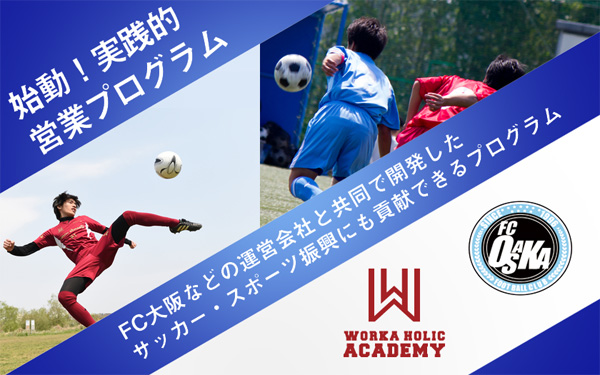 株式会社81インキュベーション(本社:大阪市北区、代表取締役:吉田昂史)が提供している、関西で長く生き残れる潜在的起業家を発掘・育成し地方創生を実現する実践型起業家スクール「 Workaholic-Academy(ワーカホリックアカデミー)」(以下ワーカホリックアカデミー)< URL: http://wkhc-academy.com/ >は、株式会社ファイナンスアイ(本社:大阪市中央区、以下ファイナンスアイ)<URL: http://financeeye.net/ >の支援により、Jリーグ入りを目指す「FC大阪」<URL: http://fc-osaka.com/ >や「ロナウジーニョサッカーアカデミージャパン」などを運営する株式会社アールダッシュ(本社:大阪市中央区、以下アールダッシュ)<URL: http://r-dash.co.jp >と共同で、未経験でも短期間で「実践的な営業力」が身に付くジョブトレーニングプログラムを2017年6月5日開始しました。ワーカホリックアカデミーの生徒は、セールスプロモーションや広告代理事業などの運営企業の主軸となる事業を現場で学び、実践的な営業力を身に付け、短期間で独立・起業するために必須の営業の実務能力を磨きます。また、これらの活動を通して、今後もアールダッシュと様々なプログラムを企画開発する事で、日本のサッカー市場やスポーツ振興にも貢献していきます。