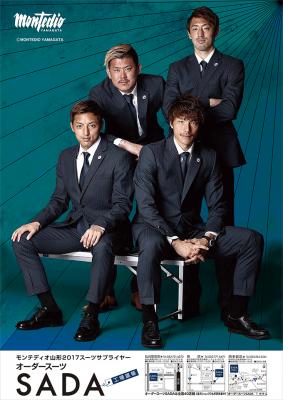 オーダースーツSADAは、以前よりモンテディオ山形にオフィシャルスーツ提供を行っておりましたが、これまでの実績を評価され、この度の2017年モデルの販売となりました。