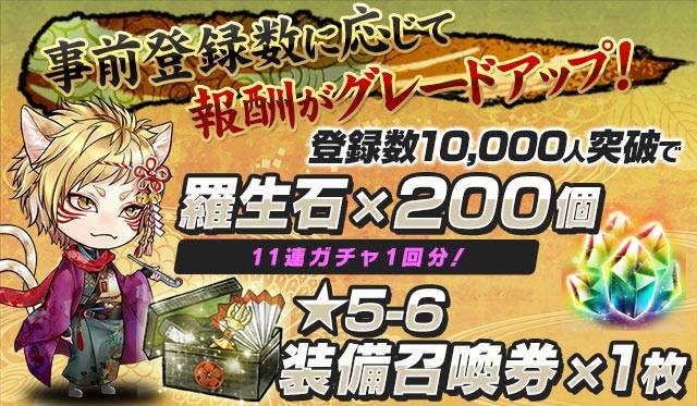 10,000人突破:200羅生石(11連ガチャ1回分)+星5-6装備召喚券1枚