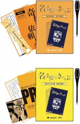 「名探偵へのきっぷ」を購入し、謎解きキットに記されたストーリーに沿って、電車で目的地へ移動して謎を解いていく周遊型謎解きゲームです。「奇妙な依頼人 編」と「消えたカメラの謎 編」の2種類があり、推理小説仕立ての構成になっています。