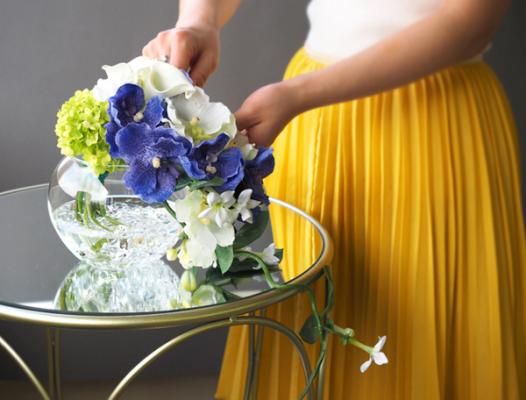 ・花材は全てアーティフィシャルフラワーのため、劣化の心配がなくインテリアフラワーとしてずっと飾れます。