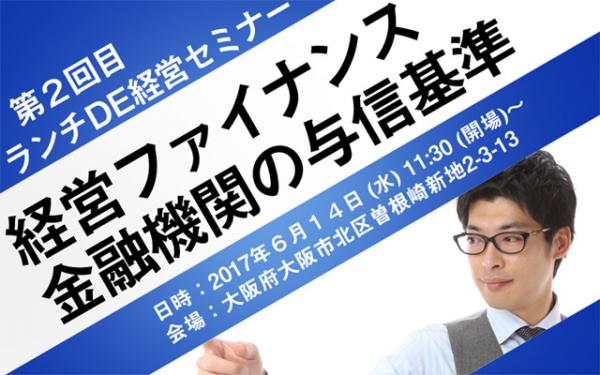 資金調達・財務支援・起業支援・企業再生などのコンサルティングを、ベンチャー起業家・中小企業経営者・起業希望者らに提供する株式会社ファイナンスアイ(大阪市中央区、以下ファイナンスアイ)<URL http://financeeye.net >は、経営者や営業組織などの人材研修・マネジメントの支援サービスを提供する株式会社インテグリティ(大阪市北区、以下インテグリティ)と共同で、ベンチャー起業家・中小企業経営者・起業希望者らを対象にした「ランチDE経営セミナー」を2017年6月14日(水)大阪・梅田にて開催します。