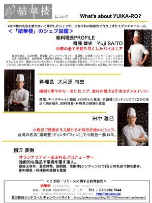 四大中華の名店を渡り歩いた名シェフたちが作り上げる、神楽坂で大人気の 本格中華店 結華楼 が2017年6月より、夏の特別ランチコース(期間限定 6月1日- 8月31日)の提供を開始いたしました。