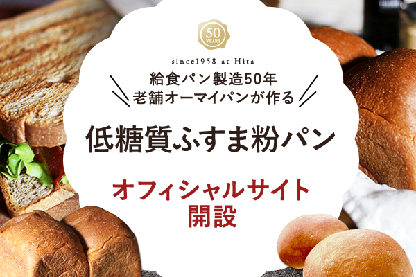 低糖質ふすま粉パンの製造は、昭和33年創業の大分県日田市にある【オーマイパン】。半世紀にわたり小学校や県立高校などのパン作りもおこなっており、子どもたち、地域から愛される信頼のパン工場です。