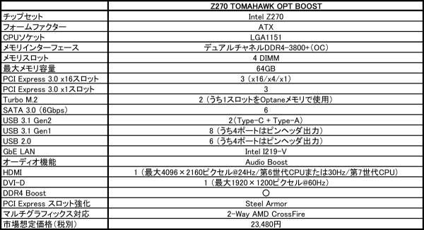 https://jp.msi.com/Motherboard/Z270-TOMAHAWK-OPT-BOOST.html
