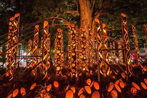 東北絆まつりで、6色の竹灯りで、東北の絆を1つにする