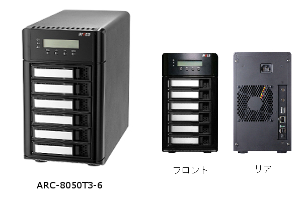 Areca社 ARC-8050T3シリーズは、Thunderbolt 3ポートを2ポートとDisplay Portを装備し、12GbpsのSAS および SATA ドライブに対応したデスクトップ型RAIDストレージ サブシステムです。40Gbpsの双方向データ転送が可能なThunderbolt 3 ポートは、4K画像データの同時入出力を可能にし、デージーチェーン接続により6台までのThunderbolt機器接続が可能です。