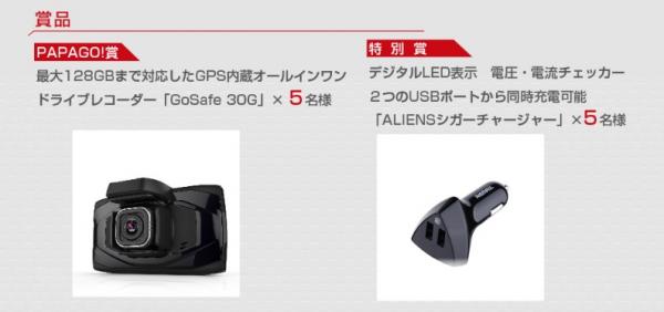 PAPAGO!賞:オールインワンドライブレコーダー「GoSafe 30G」5名様