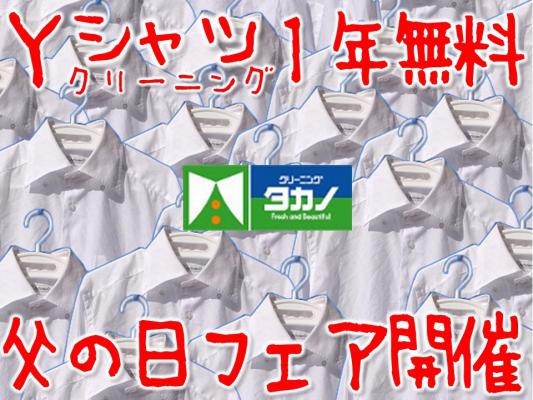 当社と致しましては、日頃から頑張るお父さんに、いつもパリッとしたYシャツを着こなしカッコいいお父さんであって欲しい。そんな想いで企画致しました。是非ともこの週末はご家族等でYシャツをご持参の上、クリーニングタカノにお越し頂ければと思います。