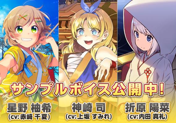 本日サンプルボイスを公開したキャラクターは【星野 柚希(CV:赤﨑 千夏)】【神崎 司(CV:上坂 すみれ)】【折原 陽菜(CV:内田 真礼)】以上の三名になります。