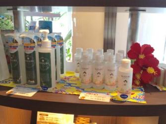 6月1日(木)から実施している「沖縄フェア」では、「わしたショップ」とのコラボレート企画として、フェア期間中「プチわしたショップ」として、わしたショップで販売している沖縄県のさまざまな物産品の販売を行っています。スタッフ自らが厳選した、スパを利用するお客様が喜ぶような美容や健康をコンセプトにした沖縄ドリンク、沖縄ならではの原材料を使った化粧品などを販売しています。沖縄ならではの物産品を購入できるイベントスペースを作ることで、館内で沖縄の雰囲気を楽しんでいただくだけではなく、ご自宅にも沖縄の雰囲気をお持ち帰りいただける企画です。